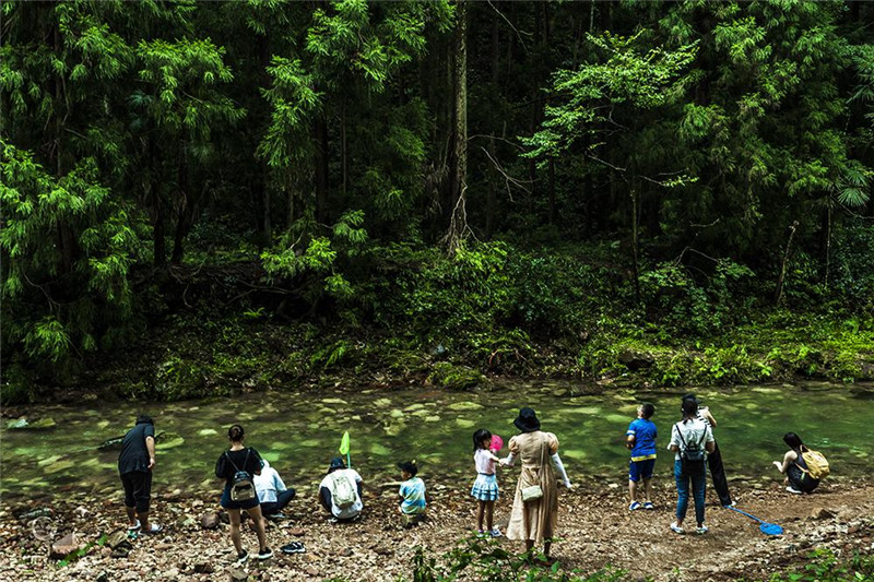 黃石寨是個“空中孤島”,所以沒有環(huán)保車,只能索道原路下山,下山不遠就是金鞭溪的入口。金鞭溪全長7.5公里,是條絕佳森林伴溪水的徒步路線,只做徒步可以在兩小時完成,途中如果休息、觀景,一般三小時可以走到另一出口——水繞四門,這里就又有環(huán)保車了,下一站就是山下的另一景點“十里畫廊”,可以小火車可以徒步,“畫廊”并不長,想拍照還是徒步比較好。