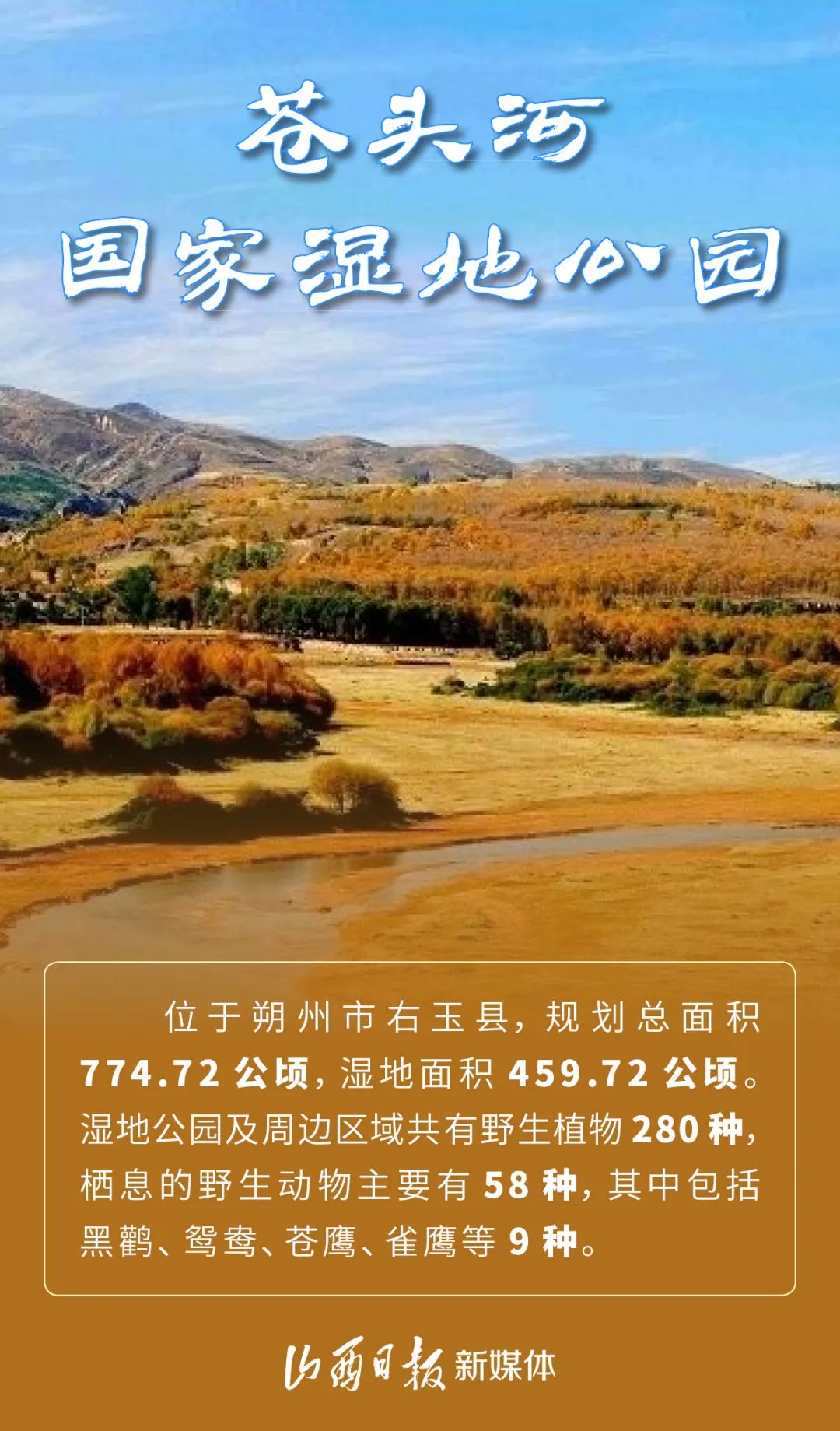 你知道嗎?山西有不少風(fēng)景優(yōu)美的國家級濕地公園。這個(gè)季節(jié)去更是別有一番風(fēng)味!下面這些濕地公園,你都去過嗎?