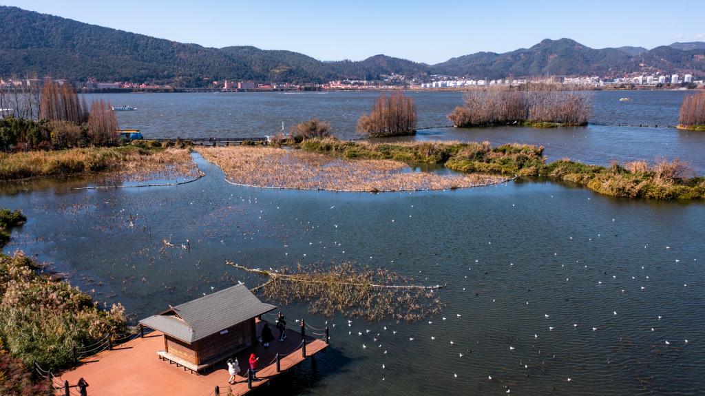 湖面碧波蕩漾,天空白云朵朵,紅嘴鷗振翅翩飛……“高原明珠”滇池正以生態(tài)和諧、生機(jī)盎然、鄉(xiāng)愁永駐的面貌呈現(xiàn)在世人面前。昆明市民感嘆道:滇池的水越來越清了,生態(tài)環(huán)境越來越好了。