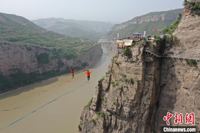 高空扁帶國(guó)際挑戰(zhàn)賽在黃河大梯子崖景區(qū)舉行。 河津市融媒體中心供圖