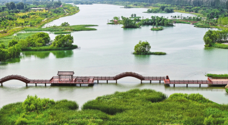 6月29日拍攝的太原汾河景區(qū)四期,郁郁蔥蔥的植被、清澈的河水、自由嬉戲的飛鳥,共同構(gòu)成了一幅生機勃勃的生態(tài)畫卷。盛夏時節(jié),太原汾河景區(qū)四期空氣清新,花香四溢,吸引眾多市民前來游玩。
