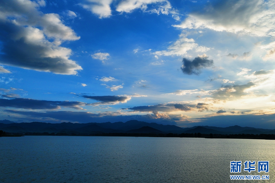 7月27日,河南省南陽市鎮(zhèn)平縣上空朝霞滿天,天空、云朵、群山、水面在霞光的映襯下,宛若一個巨大的調(diào)色盤,美如畫卷。新華網(wǎng)發(fā)(圖文/時君洋)
