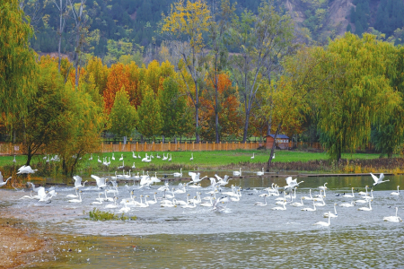 運城的冬天,吸引了大天鵝、火烈鳥、反嘴鷸、蒼鷺、棕頭鷗、灰鶴、黑翅長腳鷸等近200種野生鳥類。當成群的大天鵝從遙遠的西伯利亞飛抵運城,在運城鹽湖景區(qū)、平陸大天鵝景區(qū)、芮城圣天湖景區(qū),均呈現(xiàn)出“萬頃河水碧、一池雪花白”的壯觀景象,三大天鵝觀賞景區(qū)同步開放。成千上萬只白天鵝在黃河岸畔或自在游弋,或追逐戲水,或引吭高歌,為冬日的黃河流域運城段增添了悠然靈動,讓人在此如臨仙境,流連忘返。為方便廣大游客參觀游覽,運城免費開放冬觀天鵝專線城景通,期間周六開設平陸專線,途經(jīng)鹽湖景區(qū)、周倉文化園、平陸大天鵝景區(qū)等,周日開設芮城專線,途經(jīng)鹽湖景區(qū)、圣天湖、永樂宮、廣仁王廟、城隍廟等,法定節(jié)假日兩條線同時運行,可在運城高鐵站、北郊億適家超市、運城火車站等市區(qū)公交站點乘坐。