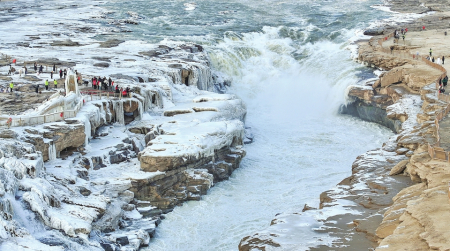 吉縣黃河壺口 “冰瀑” 引游人拍照