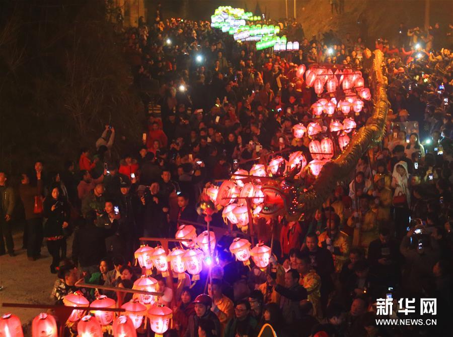 15日,湖南衡陽(yáng)縣界牌鎮(zhèn)舉行火燈節(jié)民俗活動(dòng),居民們點(diǎn)亮火把、紅燭,彩燈等,走街串巷,祈求一年風(fēng)調(diào)雨順、農(nóng)業(yè)生產(chǎn)豐收、社會(huì)平安和諧。新華社發(fā)(曹正平 攝)
