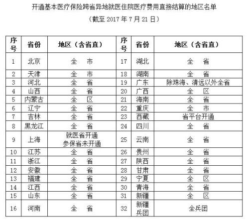 據(jù)人力資源和社會(huì)保障部網(wǎng)站消息,目前全國跨省異地就醫(yī)住院醫(yī)療費(fèi)用直接結(jié)算聯(lián)網(wǎng)接入工作順利推進(jìn)。截至7月21日,全國31省份和新疆生產(chǎn)建設(shè)兵團(tuán)均接入國家異地就醫(yī)結(jié)算系統(tǒng),開通390個(gè)地區(qū),占97.5%。截至7月19日,開通4055家跨省異地就醫(yī)住院醫(yī)療費(fèi)用直接結(jié)算定點(diǎn)醫(yī)療機(jī)構(gòu)。