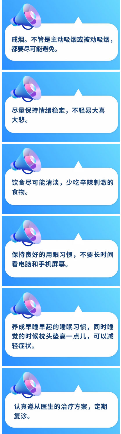 如果患者是剛開始發(fā)病,眼部癥狀還不明顯,經(jīng)醫(yī)生評估后,通常定期隨訪就可以了;如果突然出現(xiàn)病情進展,就需要立即復(fù)診。同時在這個過程中,保持甲狀腺功能穩(wěn)定,并按照上述提到的生活建議去養(yǎng)成習慣,可以在一定程度上延緩病情的發(fā)展。