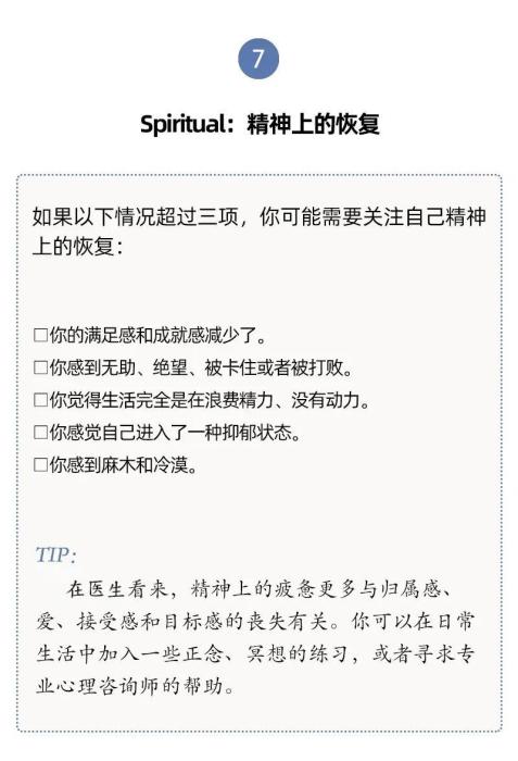 有內(nèi)科醫(yī)生根據(jù)研究和臨床經(jīng)驗,提出了7種類型的休息方式,幫助我們確定最需要哪一種。