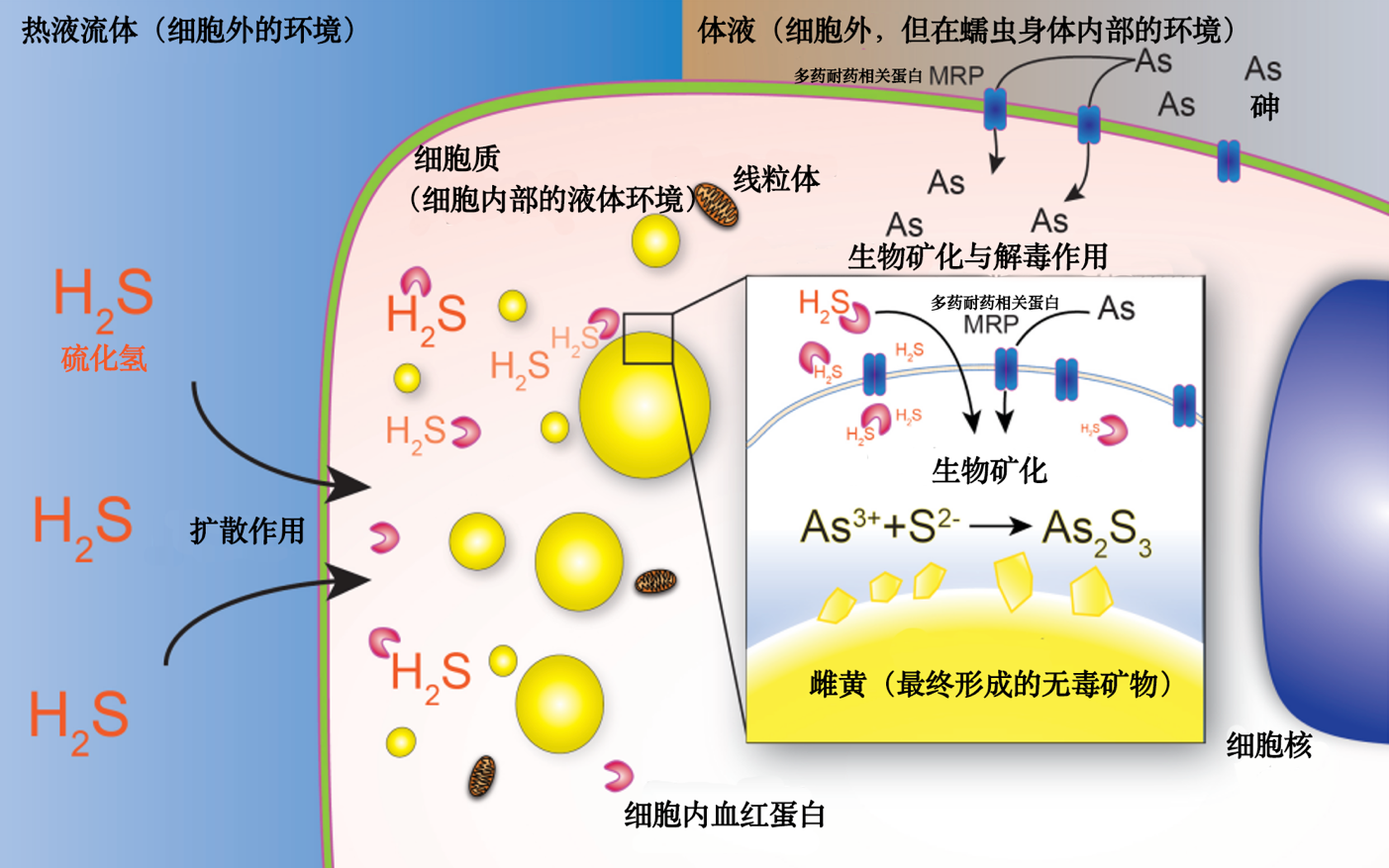 2025年8月,中國科學(xué)院海洋研究所的研究團隊在《PLOS生物學(xué)》(PLOS Biology)上發(fā)表了一項驚人發(fā)現(xiàn):赫斯帕拉爾文氏蠕蟲通過一種前所未有的“以毒攻毒”機制,將兩種致命毒素——砷和硫化氫——結(jié)合成無毒的雌黃礦物,實現(xiàn)了生物界首個已知的解毒性生物礦化。