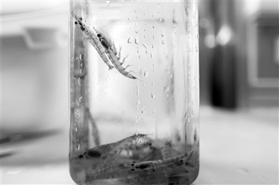 中國南極考察隊獲取的磷蝦樣品。 新華社記者 劉詩平攝