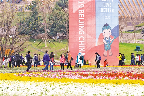 4月20日,世園會(huì)進(jìn)行全負(fù)荷壓力測(cè)試,參觀者在園區(qū)內(nèi)游覽。(北京世園局供圖)