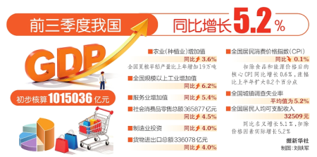 前三季度我國GDP同比增5.2%