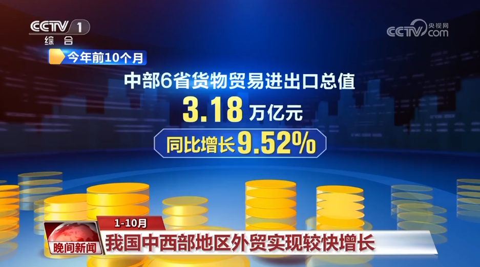 1—10月我國中西部地區(qū)外貿(mào)實(shí)現(xiàn)較快增長