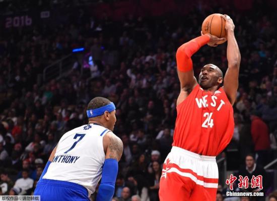 2月15日,2016NBA全明星正賽在多倫多開(kāi)打,科比·布萊恩特的最后一次全明星賽以勝利而結(jié)束,西部以196-173大勝東部,西部創(chuàng)下了全明星賽得分紀(jì)錄,兩隊(duì)總得分也刷新了去年創(chuàng)下的紀(jì)錄。圖為科比跳投。