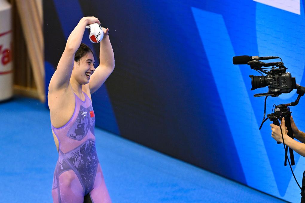 覃海洋摘金短短幾分鐘后,中國(guó)蝶泳名將張雨霏在女子100米蝶泳決賽中以56秒12的成績(jī)獲得冠軍,如愿以償?shù)財(cái)[脫了世錦賽“銅牌專業(yè)戶”的稱呼,奪得個(gè)人首枚世錦賽金牌。雖然在東京奧運(yùn)會(huì)拿到200米蝶泳冠軍,但張雨霏在世錦賽上一直不太順利,在2022年布達(dá)佩斯世錦賽女子蝶泳從50米到200米三個(gè)距離的比賽中全部獲得銅牌。