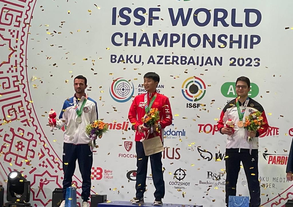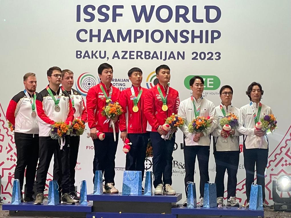該項(xiàng)目比賽中,中國(guó)隊(duì)老將新人都有出色發(fā)揮。首次參加國(guó)際比賽的王鑫杰資格賽打出588環(huán)排名第一,與位居次席的李越宏攜手晉級(jí)決賽。他們兩人與劉楊攀組成的中國(guó)隊(duì)團(tuán)體成績(jī)1756環(huán),追平了世界紀(jì)錄,足足領(lǐng)先亞軍德國(guó)隊(duì)16環(huán)。