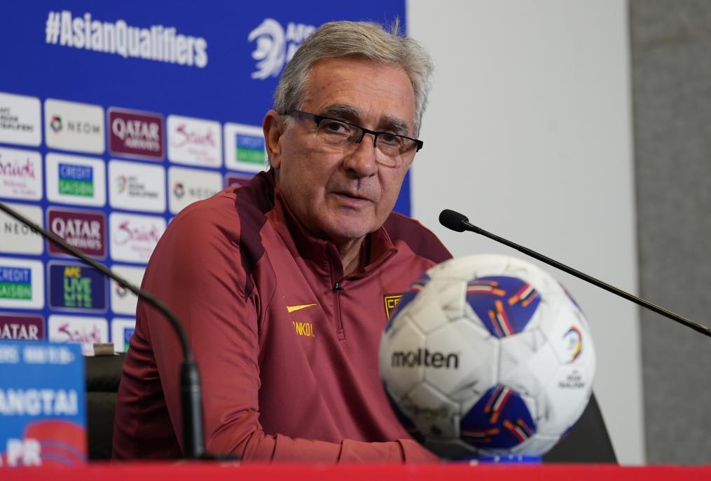 10月9日,中國(guó)隊(duì)主教練伊萬(wàn)科維奇在發(fā)布會(huì)上。新華社發(fā)(謝思達(dá) 攝)