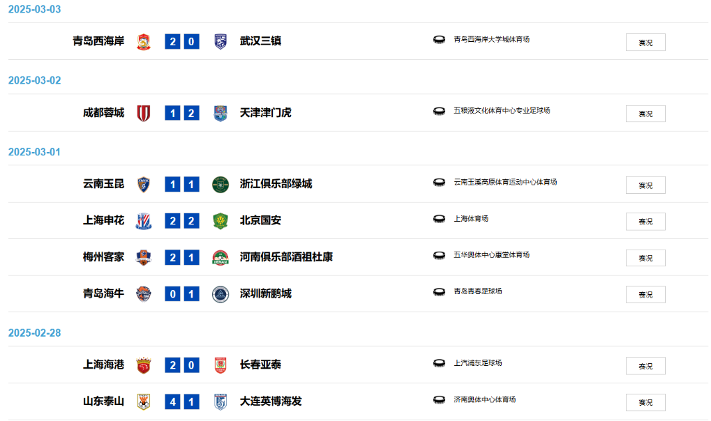 圖為2025賽季中超聯(lián)賽第二輪賽果。圖片來自中國足球職業(yè)聯(lián)賽聯(lián)合會(huì)官網(wǎng)