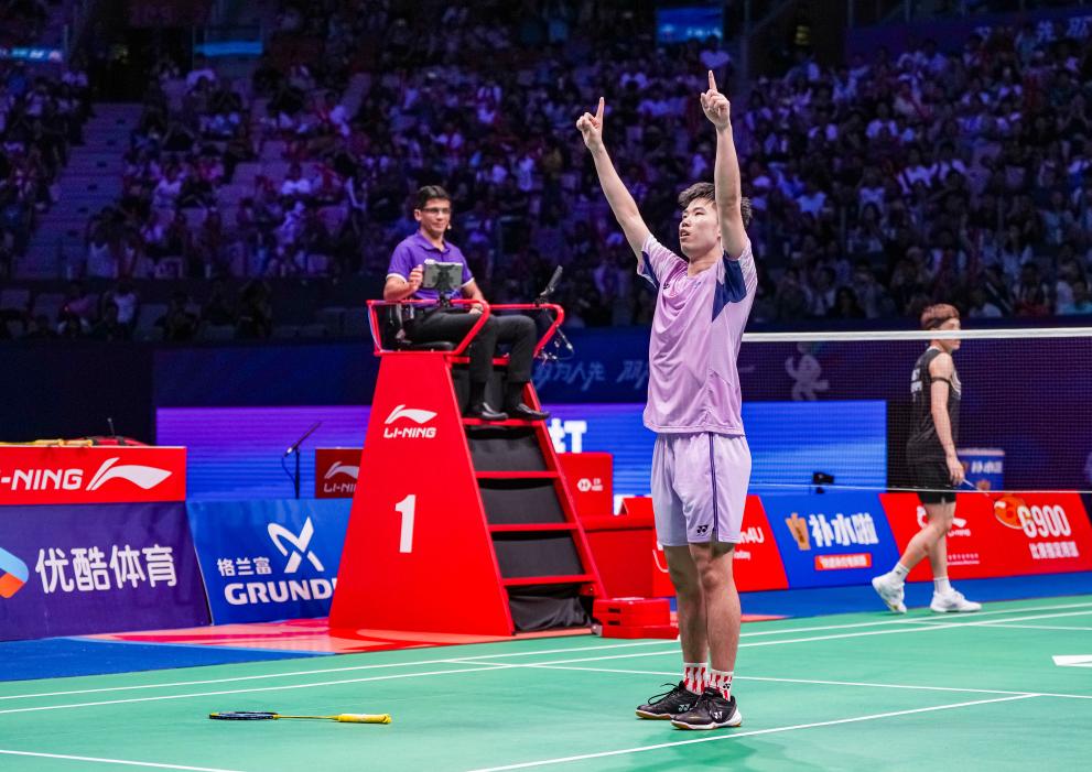 男單決賽中,翁泓陽以21:11、21:15擊敗中國臺北隊選手林俊易,后者在本周已經(jīng)連續(xù)贏下多位種子選手,但其慣常的犀利進攻在本場比賽中并沒有奏效。