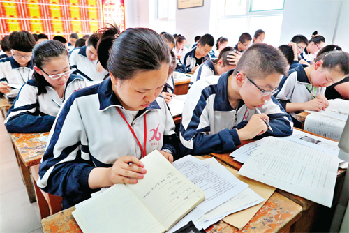 忻州市招生委員會中招辦亢增高主任介紹說,中考涉及千家萬戶和每個考生的切身利益,備受社會的廣泛關注,中考及其錄取工作直接關系到教育公平公正和社會穩(wěn)定。為了確保中考順利進行,給廣大考生創(chuàng)造一個和諧平安、公平公正的優(yōu)良考試環(huán)境,市招委要求各縣(市、區(qū))招生委員會加大考試環(huán)境的綜合治理,統(tǒng)籌教育、公安、宣傳、保密、電力、通信、郵政、衛(wèi)生、食藥監(jiān)、環(huán)保、城建、無管委等部門,強化措施,明確職責,通力合作,按照中考工作流程層層建立應急機制,無論涉及哪方面的突發(fā)事件,都有相對應的應急預案和措施,確保中考期間交通暢通、供電安全、無噪音污染、食品安全、無消防事故,共同創(chuàng)建良好的考試環(huán)境,圓滿完成今年的中考工作。同時希望全市廣大考生端正心態(tài),沉著、誠信應考。圖為6 月16 日下午,忻州六中315 班初三學生正在專心致志自習,進行中考前的最后沖刺。(魯明強 攝影報道)