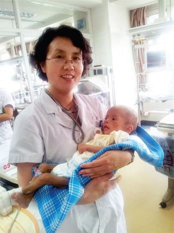 懷抱患兒的劉彩霞