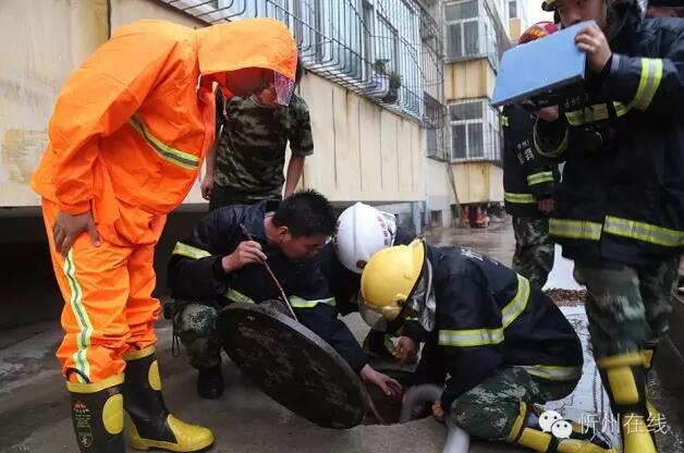 19日中午12時,忻府區(qū)中隊在得到消息后迅速趕往現(xiàn)場,在小區(qū)大門口用砂石修筑起臨時堤壩,再使用機動泵將地下室的積水抽到消防車內(nèi),最后統(tǒng)一排到路邊下水道里,經(jīng)過將近四個小時的時間將險情處理完畢。