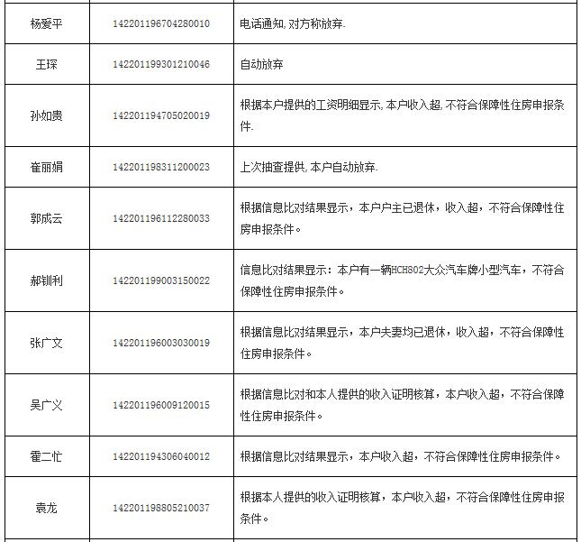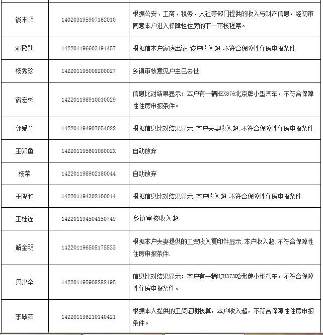 2014年申報公(廉)租房不符合保障條件花名表