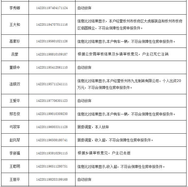 2014年申報(bào)公(廉)租房不符合保障條件花名表