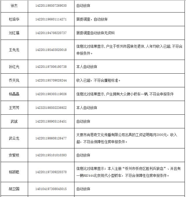 2014年申報(bào)公(廉)租房不符合保障條件花名表