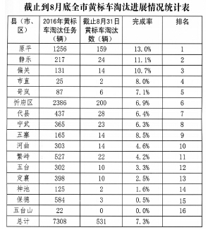 本報訊 為了進(jìn)一步加快淘汰黃標(biāo)車工作,日前,市政府下發(fā)通知,要求各縣(市、區(qū))及市直各有關(guān)部門要抓緊推進(jìn)2016年黃標(biāo)車淘汰工作。