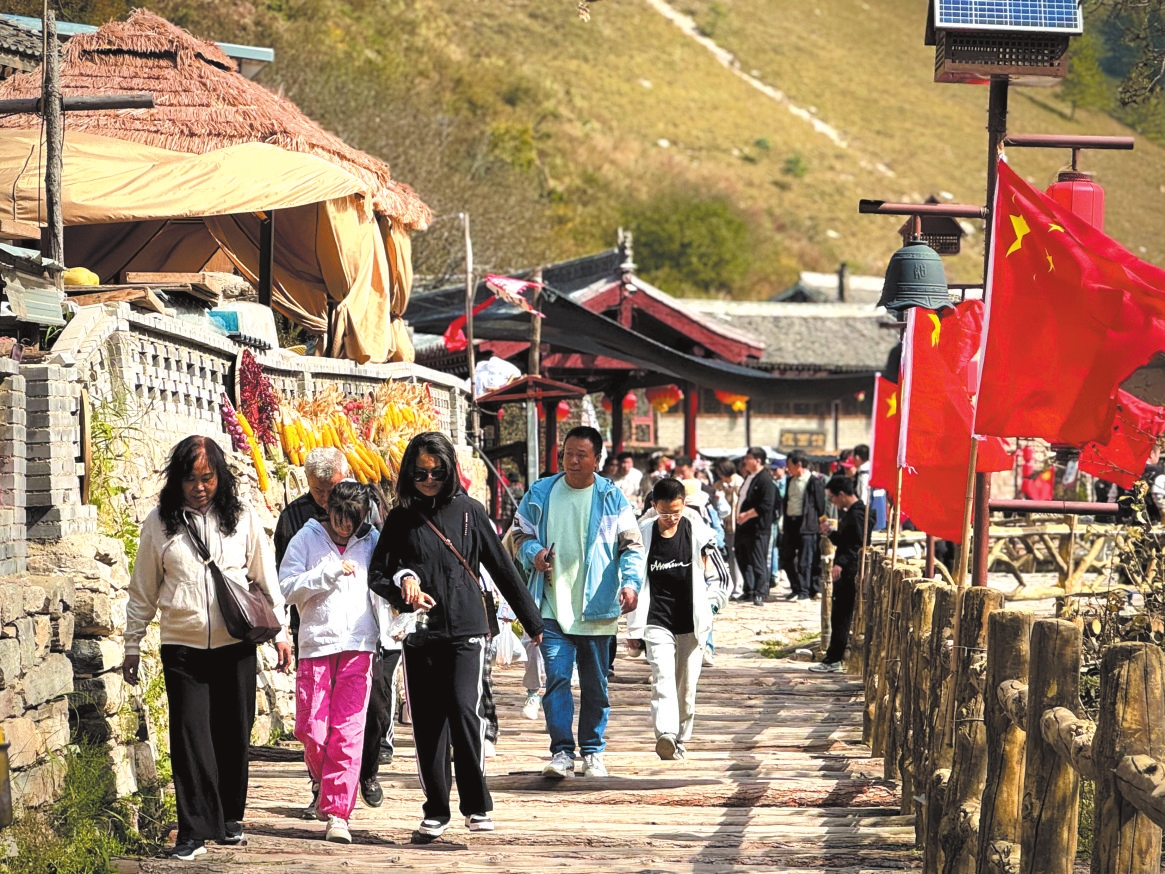 懸空村景點憑借獨特的“空中曬秋”景觀,成為游客的熱門選擇。這座擁有300年歷史的“天上人家”,直接把秋天的糧倉搬上了絕壁,玉米、辣椒、南瓜、大蒜……隨手一拍都是豐收大片,讓“空中曬秋”成為國慶期間的特色記憶點。