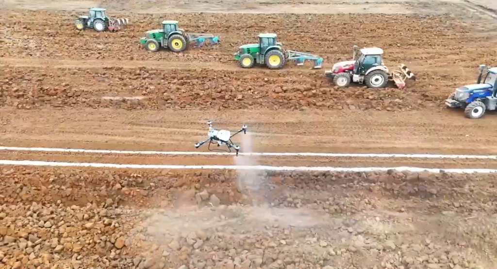蘇墾農(nóng)發(fā)云臺(tái)分公司總經(jīng)理陳寬兵說(shuō),“目前,我們?cè)婆_(tái)農(nóng)場(chǎng)耕地已實(shí)現(xiàn)無(wú)人機(jī)播種、施肥、撒藥及巡田的全覆蓋。在無(wú)人機(jī)的北斗終端中輸入田塊坐標(biāo)邊界,無(wú)人機(jī)就會(huì)自動(dòng)規(guī)劃航線,肥料噴灑重疊率誤差小于5厘米。這樣可以讓小麥吸收更均勻,比普通農(nóng)機(jī)噴灑的效果更好。”
