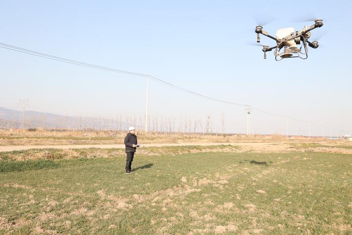 在位于江蘇連云港的云臺(tái)農(nóng)場(chǎng),高效節(jié)能、操作便捷的植保無(wú)人機(jī)騰空而起,成為1.8萬(wàn)畝小麥春季管護(hù)的得力助手。通過(guò)無(wú)人機(jī)作業(yè)每1000畝地僅需一名工作人員,兩天便可完成農(nóng)場(chǎng)全部小麥地的施肥。