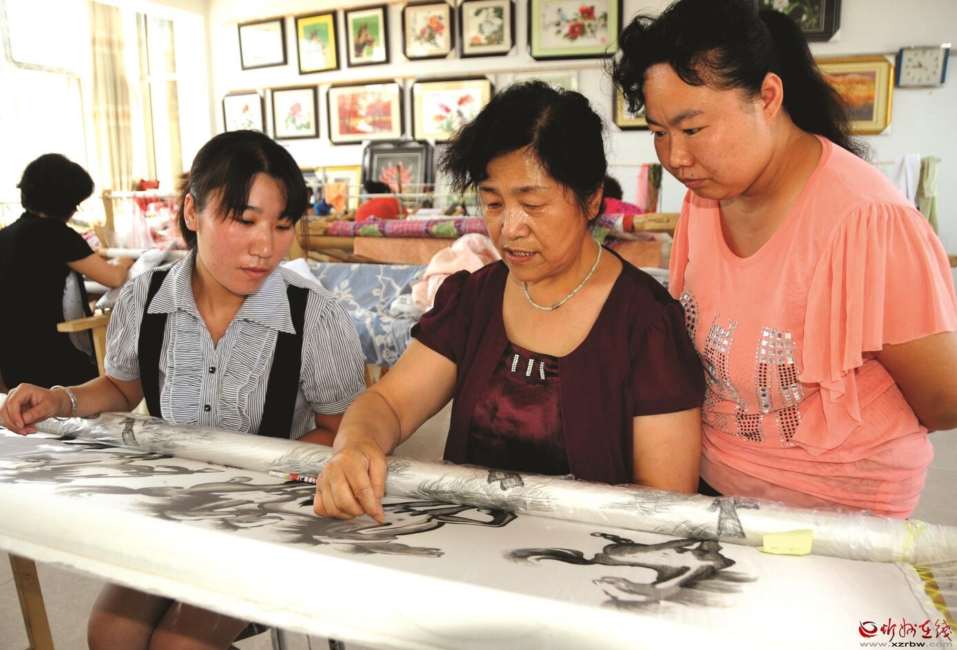 代縣易地扶貧移民小區(qū)婦女們正在參加刺繡技藝培訓(xùn)。石俊文 攝