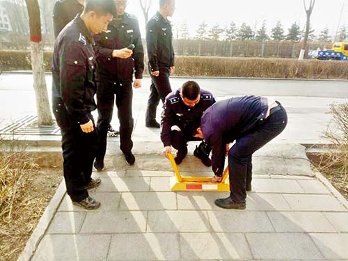 事后,該隊(duì)根據(jù)城市道路管理相關(guān)法律法規(guī),依法對設(shè)置的10個地鎖和11個隔離欄進(jìn)行拆除,還路于民,贏得了廣大市民的贊許。下圖為執(zhí)法人員正在拆除私自安裝的地鎖。(張志遠(yuǎn) 董子源)