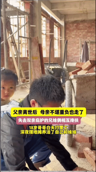 “18歲哥哥白天背著妹妹雙腳赤裸著在工地搬磚、深夜還要擺地?cái)?,失去雙親庇護(hù)的兄妹倆相互攙扶……”