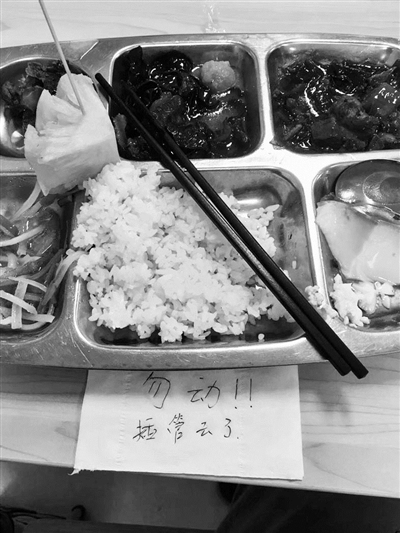 之所以要選擇這樣的方式,他解釋,因?yàn)楫?dāng)時(shí)餐廳里沒有其他同科同事,而且麻煩他人一直守著自己的餐盤也不可能,所以就希望留下紙條提示食堂工作人員不要收他的餐盤。而在去年,欒遠(yuǎn)航就曾遇到過一次臨時(shí)離開,餐盤被收走的尷尬。“后來插管很順利,差不多20分鐘我就回來了,餐盤也沒被收走?!?欒遠(yuǎn)航說。