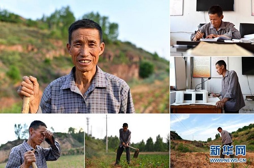 董留照,男,1949年出生,山西省長治市武鄉(xiāng)縣韓道溝村人,現(xiàn)任韓道溝村黨支部書記。近年來,董留照帶領村民大力發(fā)展梅杏種植、家禽養(yǎng)殖,改善村容村貌。2018年,韓道溝村實現(xiàn)整村脫貧,村民年人均收入達到4500多元。 左上:董留照肖像;右上:董留照在村委會整理材料;右中:董留照在村委會通過廣播向村民宣傳農業(yè)政策;右下:董留照在地里松土;下中:董留照在地里忙碌;下左:董留照擦拭額頭上的汗水(拼版照片,6月10日攝)。 地處晉東南的山西省長治市,位于由太行山、太岳山環(huán)繞而成的上黨盆地中。在群山中、崖壁上,許多村莊自然條件惡劣,基礎設施落后,脫貧致富是大山深處人們的迫切心愿。 近年來,一場場脫貧攻堅戰(zhàn),在一個個深山村打響。政府全力探索脫貧路徑的同時,山區(qū)百姓因地制宜,靠自己的雙手和智慧走上致富路,交出了一份扎實的脫貧答卷。 記者在太行山、太岳山一路尋訪,記錄下多位70歲老人的生活。這些共和國的同齡人,親歷了山鄉(xiāng)的巨變,見證著長治山區(qū)脫貧攻堅偉大工程的一步步推進。 新華社記者 詹彥 攝