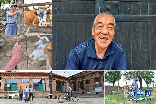 尚彩良,男,1949年出生,山西省長治市潞城區(qū)比干嶺村人,家傳的養(yǎng)殖技術(shù)讓他從小不愁吃穿,但突如其來的患病導(dǎo)致他生活陷入困難。2015年開始,他享受貧困戶養(yǎng)殖補(bǔ)貼、種植補(bǔ)貼和醫(yī)療補(bǔ)貼,2016年在當(dāng)?shù)卣膸椭伦∵M(jìn)了新房。 右上:尚彩良肖像;左上:尚彩良準(zhǔn)備去放牛;左中:尚彩良在放牛;左下:尚彩良(中)和家人在新院子里合影;下中:尚彩良推著自行車走進(jìn)院子;下右:尚彩良在去放牛的路上(拼版照片,6月12日攝)。 地處晉東南的山西省長治市,位于由太行山、太岳山環(huán)繞而成的上黨盆地中。在群山中、崖壁上,許多村莊自然條件惡劣,基礎(chǔ)設(shè)施落后,脫貧致富是大山深處人們的迫切心愿。 近年來,一場場脫貧攻堅戰(zhàn),在一個個深山村打響。政府全力探索脫貧路徑的同時,山區(qū)百姓因地制宜,靠自己的雙手和智慧走上致富路,交出了一份扎實的脫貧答卷。 記者在太行山、太岳山一路尋訪,記錄下多位70歲老人的生活。這些共和國的同齡人,親歷了山鄉(xiāng)的巨變,見證著長治山區(qū)脫貧攻堅偉大工程的一步步推進(jìn)。 新華社記者 曹陽 攝