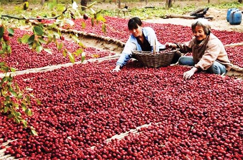 圖為棗農(nóng)正在晾曬紅棗。陳 璐 攝