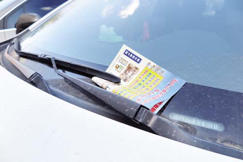 情況三:在日常生活里,我們經(jīng)常會(huì)看到一些散發(fā)銷售商品房廣告的人將廣告紙放到汽車的雨刮器下面,如果駕駛員不及時(shí)清理,會(huì)遮擋前方玻璃的視線;一旦廣告紙順勢滑入汽車前蓋下的驅(qū)動(dòng)器械里面,還可能造成不可預(yù)測的安全隱患。