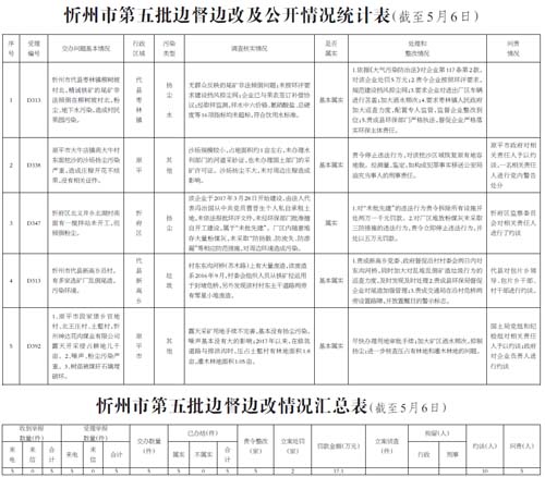 中央第二環(huán)境保護(hù)督察組進(jìn)駐山西督察期間(2017年4月28日—5月28日)設(shè)立專門值班電話:0351—3805000,專門郵政信箱:山西省太原市6103號(hào)信箱。督察組受理舉報(bào)電話時(shí)間為每天早8:00—晚20:00。 2017年5月3日晚,收到省群眾反映問題處置組督辦的第五批群眾反映問題共計(jì)5件。其中重點(diǎn)案件1件。 我市高度重視,立即組織查處,截至5月6日,督辦的5件群眾反映問題已辦結(jié)。其中,代縣確認(rèn)基本屬實(shí)2件;原平市確認(rèn)基本屬實(shí)2件;忻府區(qū)確認(rèn)基本屬實(shí)1件。對(duì)于屬實(shí)已辦結(jié)的環(huán)保問題,分別采取了相應(yīng)處理措施,對(duì)兩家企業(yè)實(shí)施行政處罰,處以罰款17.1萬元;目前,代縣對(duì)3名相關(guān)責(zé)任人進(jìn)行了約談;原平市對(duì)5名相關(guān)責(zé)任人進(jìn)行了約談,對(duì)1名領(lǐng)導(dǎo)干部作出了黨紀(jì)政紀(jì)處分;忻府區(qū)對(duì)2名相關(guān)責(zé)任人進(jìn)行了約談,對(duì)4名領(lǐng)導(dǎo)干部作出了黨紀(jì)政紀(jì)處分。對(duì)5件群眾反應(yīng)問題調(diào)查處理情況進(jìn)行了信息公開。