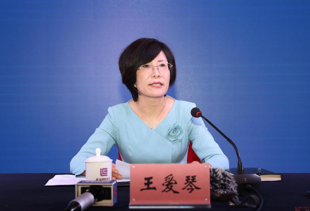 王愛(ài)琴介紹大會(huì)整體情況并回答記者提問(wèn)。范濤