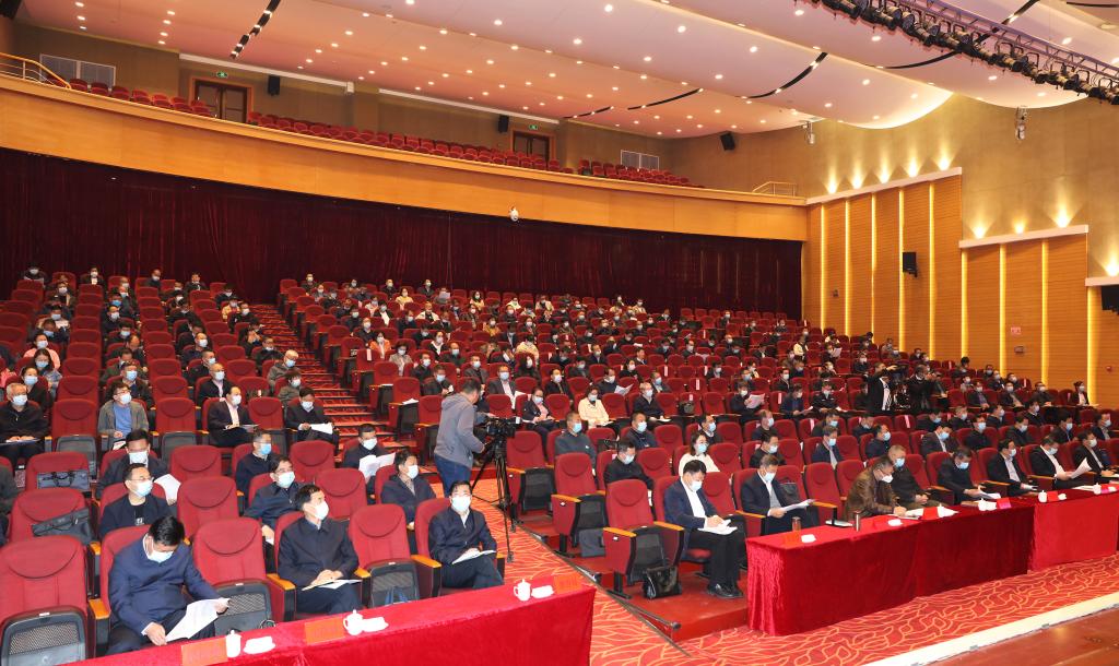 圖為我市鞏固拓展國(guó)家衛(wèi)生城市創(chuàng)建成果工作推進(jìn)會(huì)議會(huì)場(chǎng)。 本報(bào)記者 范 濤 攝