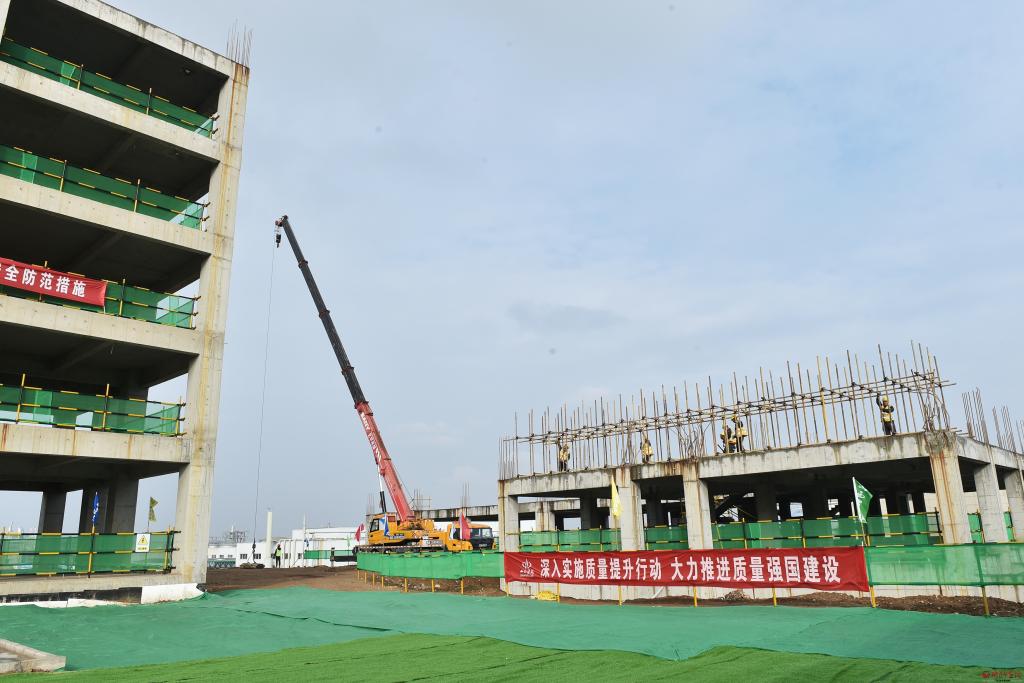 在電子信息裝備產(chǎn)業(yè)園觀摩檢查標(biāo)準(zhǔn)化廠房項(xiàng)目(二期)建設(shè)情況。馮曉磊攝