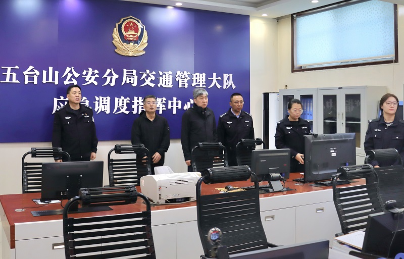 朱曉東在五臺(tái)山交警大隊(duì)檢查值班值守情況。李行攝