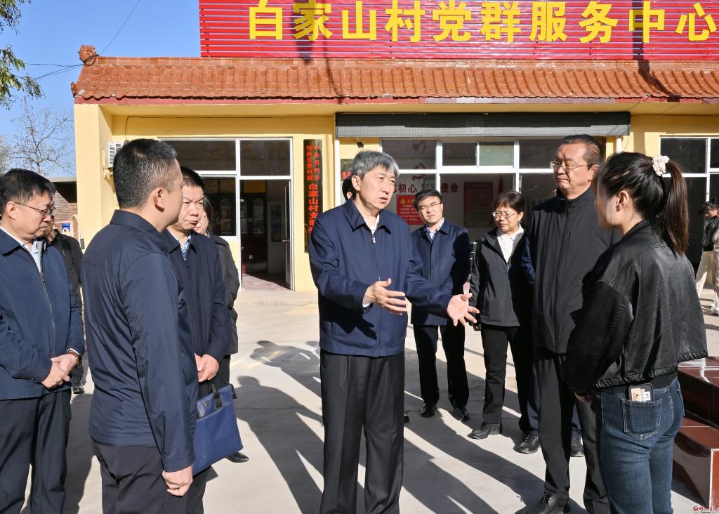 在系舟山南麓柳林尖腳下的忻府區(qū)董村鎮(zhèn)白家山村,朱曉東走到村民中了解土地產(chǎn)出、生計(jì)收入情況,到村黨支部了解組織建設(shè)、集體經(jīng)濟(jì)發(fā)展、村莊長(zhǎng)遠(yuǎn)規(guī)劃等情況。在董村鎮(zhèn)太延村,朱曉東察看閑置校舍屋頂建起的光伏發(fā)電項(xiàng)目,聽(tīng)取村里長(zhǎng)茄種植、村民外出包工就業(yè)以及村集體經(jīng)濟(jì)壯大情況,察看牧南總排渠局部治理效果。在北義井鄉(xiāng)安邑村,朱曉東了解村民傳統(tǒng)副業(yè)收入途徑,聽(tīng)取村黨組織和干部隊(duì)伍建設(shè)情況匯報(bào),入戶察看煤改電工程和戶廁改造效果,了解村民改造意愿。