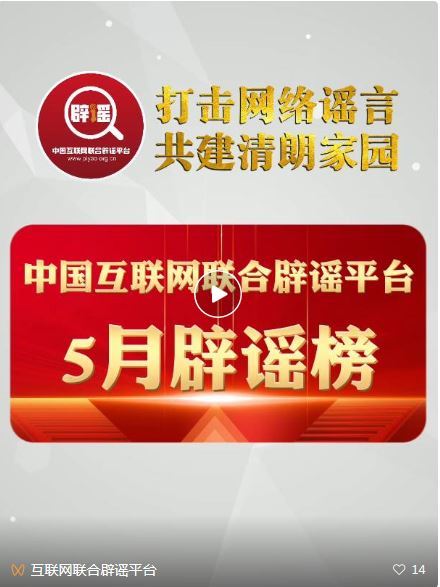打擊網(wǎng)絡(luò)謠言 共建清朗家園 中國互聯(lián)網(wǎng)聯(lián)合辟謠平臺5月辟謠榜