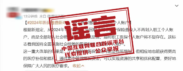 謠言:2024年職工醫(yī)保繳費將不再劃入個人賬戶?
