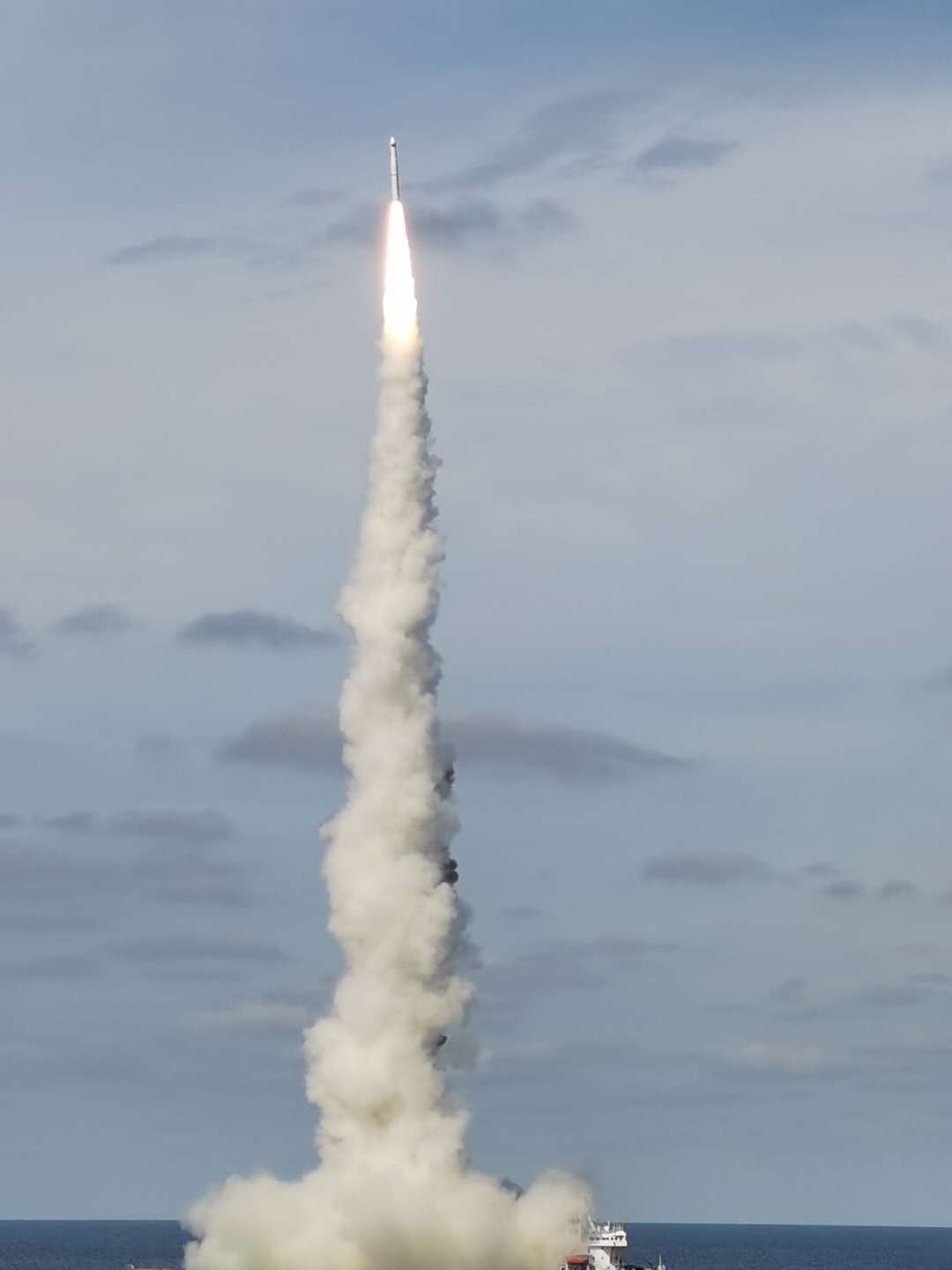 9月15日,長(zhǎng)征十一號(hào)運(yùn)載火箭在黃海海域,“一箭九星”發(fā)射成功(王偉童 攝)